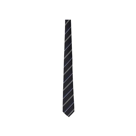 レジメ柄のネクタイ(シルバーラメ入り)。イーストボーイのリボン・ネクタイは生地から縫製まで全て日本製。手作業で丁寧に作られているので温かみのある製品に仕上がっています。