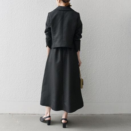 ジャカード織りにすることで、生地に厚みが出て高見えコーデに。