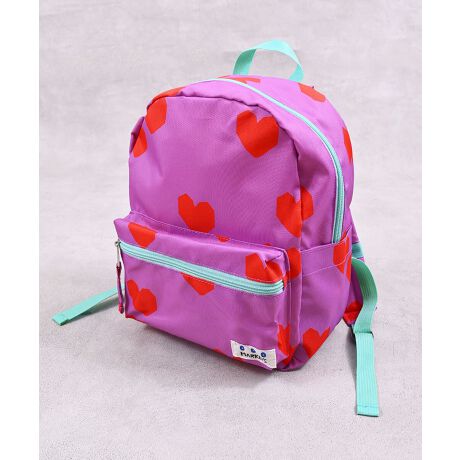 4歳の娘にMサイズを購入しました。全体が濃いピンクでハートが沢山で可愛くて、娘もお気に入りです。保育園用に購入しましたが、荷物がたくさん入ります。少し薄めな生地ですが、値段がお手頃なので許容範囲かなと思ってます。なかなか被らないデザインで目立つので、オリジナル感があって気に入りました!!