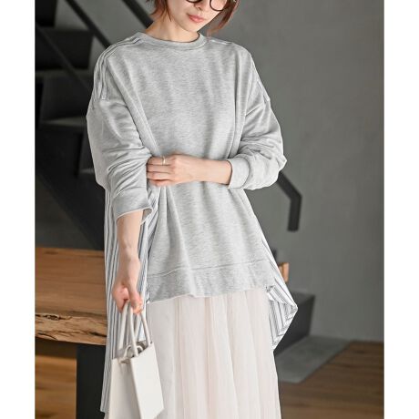 カジュアルなスウェットにストライプの布帛を切り替えた清潔感のあるデザインです。