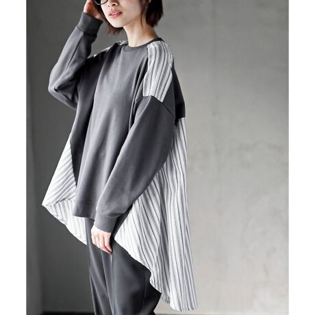 カジュアルなスウェットにストライプの布帛を切り替えた清潔感のあるデザインです。
