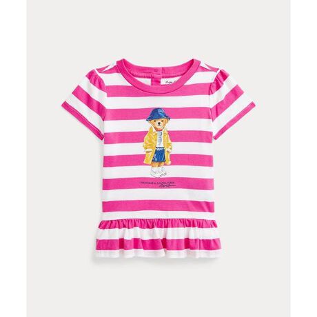 キュートなペプラムの裾と、シグネチャーのRalph Laurenルックに身を包んだ人気のマスコットが特徴のコットンジャージーTシャツ。・クルーネック / 背面中央に3つボタンのプラケット・半袖のパフスリーブ・フロント中央にPoloベア、Polo Bear by Ralph LaurenとRalph Laurenの文字のプリント・ヒダの入った裾※商品の色味は、光のあたり具合など諸条件により色感が多少異なって見える場合がございますので予めご了承下さい。 【素材】・本体:綿 100%【生産国】マカオ