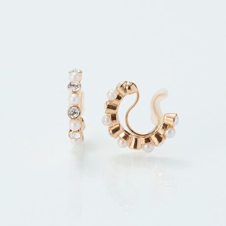 【痛くないシリーズ】パール×ビジューフープライトフィットイヤリング シャンパンゴールド
