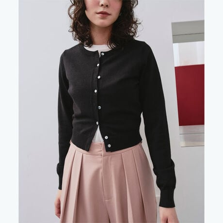 クールネックで丈が短いカーディガンを探していました。肌触りも良く丈が短いので、低身長の私にはバランスが取りやすいカーディガンです。目線が上にいくので、いつもより身長が高く見えます。おすすめです。