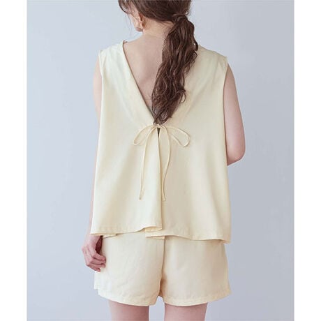 おしゃれにカバーアップが叶うビキニドッキングフレアタンクトップ×ショートパンツセットアップ。
