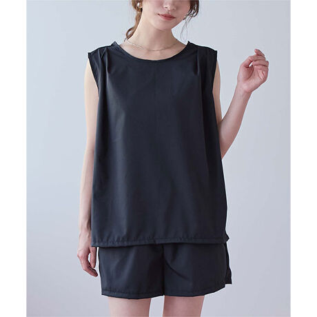 おしゃれにカバーアップが叶うビキニドッキングフレアタンクトップ×ショートパンツセットアップ。