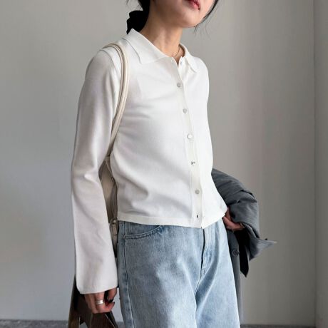 ・襟付きのデザインが今っぽいシャツカーディガンです