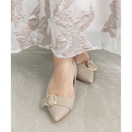 大きめのバックルが目を惹くベルトデザインパンプス。