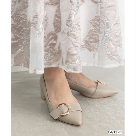 大きめのバックルが目を惹くベルトデザインパンプス。