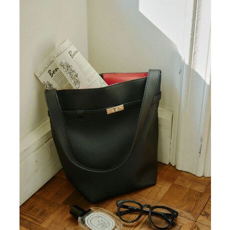 カジュアルやキレイ目スタイリングどちらでも合わせられる万能ワンショルダーバケツバッグ。ワンポイントのベルトと金具のデザインが高級感を漂わせます。ベルトは取り外し不可の設定になっていますがそうすることによりバッグ本体が安定します◎裏地が配色になっているのがオシャレポイント◎