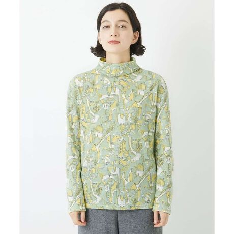 ポップでキュートな街並みのイラストプリントのハイネックプルオーバー。