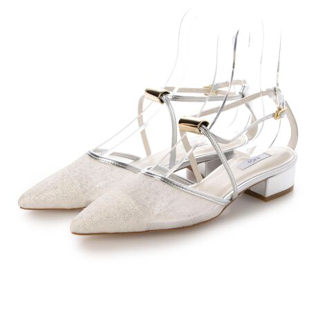 シャープなつま先が大人っぽいチュールパンプス。つま先は当て生地があるのでヌーディーになりすぎず、透け感が苦手な方にもおすすめ。細めのストラップとゴールドのモチーフが足をすっきり華奢に見せてくれるので、様々なコーディネートにマッチし変化を楽しめます。3cmのヒールは低すぎず高すぎないちょうどいい高さで、デイリーユースしやすいアイテム。