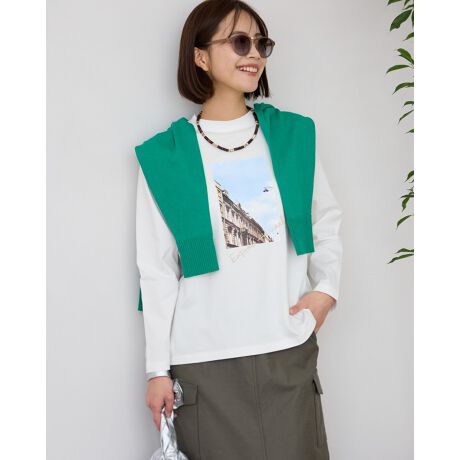 空のフォトプリントがポイントのプリントTシャツです。カーディガンや羽織リのインナーにも使いやすいように程よいゆとりのセットインスリーブで作りました。オーガニックコットンを使用しています。