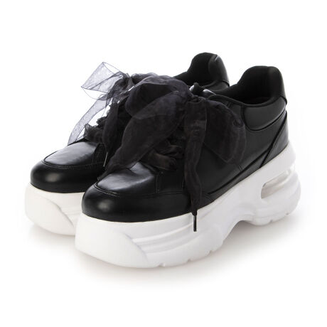 XSサイズからLLサイズまでのサイズ展開!ぷっくりとした厚底のソールがコーディネートにメリハリを出してくれるスニーカー。カジュアルさがあるソールに柔らかいチュールのシューレースを合わせてリボンレースの雰囲気をプラス。カジュアルになりすぎずスカートにも合うスニーカーに仕上げました。シンプルな付け替えシューレースも付いているので雰囲気の変化を楽しめて、もちろんカジュアルコーデにもばっちりハマります。見た目以上に軽量なのでデイリーで使える履き心地に◎