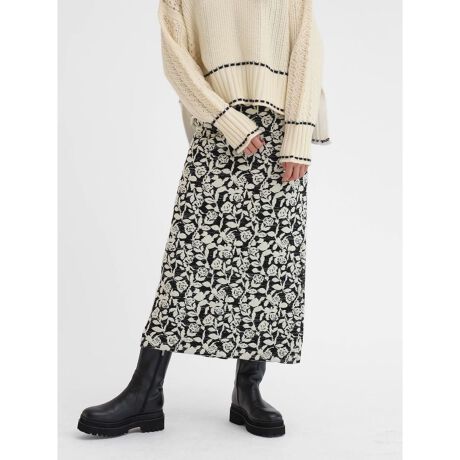 ボタニカルフワラーデザインのジャガードが目を惹くニットスカート。