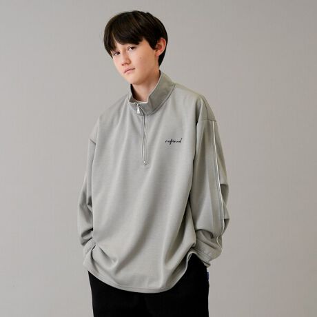 クッション性があり、シワになりにくい特徴を持つダンボールニットを使用したハーフジップトレーナーです。