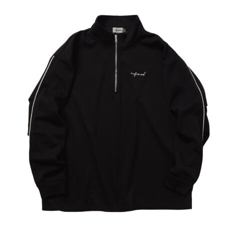 クッション性があり、シワになりにくい特徴を持つダンボールニットを使用したハーフジップトレーナーです。