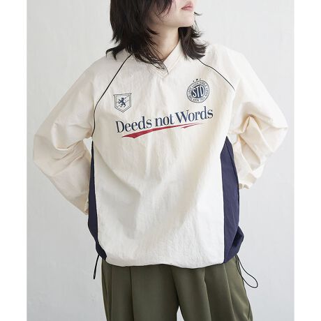 ラグランスリーブの切り替えやレトロな配色カラー、裾のドロスト仕様など凝ったディテールが魅力です。