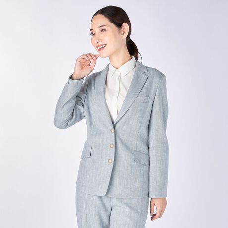 ヘリンボーン生地で仕立てたジャケット。クラシカルな3つボタン仕様。軽やかなムードのカラーで、スタイリッシュな着こなしを演出します。すっきりと着こなせる立体的で美しい仕立てのシルエットが魅力。おしゃれなムードときちんと感を兼ね備え、プライベートでもビジネスシーンでも活躍する万能なアイテムです。