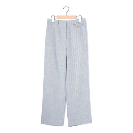 ヘリンボーン生地で仕立てたパンツ。軽やかなムードのカラーで、スタイリッシュな着こなしを演出します。フロント左の飾りポケットがデザインアクセント。履きこなしやすいストレートワイドシルエット。おしゃれなムードときちんと感を兼ね備え、プライベートでもビジネスシーンでも活躍する万能なアイテムです。