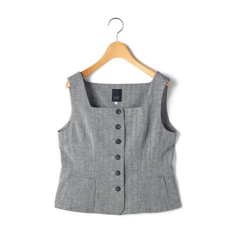 [型番:78253161011]美しいラインを演出してくれるスクエアネックのヘリンボーンベスト。フロントに配置したボタン、切り替えに重ねるようにあしらったポケットがデザインポイントに。軽やかな着心地の麻とポリエステルのブレンド素材を採用しています。※商品画像はサンプルを使用しているため、実際の商品と色味などの仕様が異なる場合がございます。予めご了承ください。