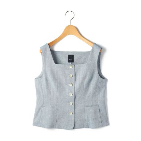 [型番:78253261011]美しいラインを演出してくれるスクエアネックのヘリンボーンベスト。フロントに配置したボタン、切り替えに重ねるようにあしらったポケットがデザインポイントに。軽やかな着心地の麻とポリエステルのブレンド素材を採用しています。※商品画像はサンプルを使用しているため、実際の商品と色味などの仕様が異なる場合がございます。予めご了承ください。