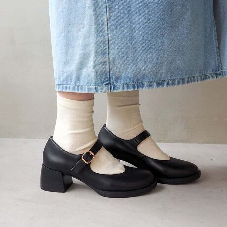ほんのりレトロな雰囲気と、ゆったりめのスクエアトゥで、きれいめすぎずカジュアルにも合わせやすいデザイン。