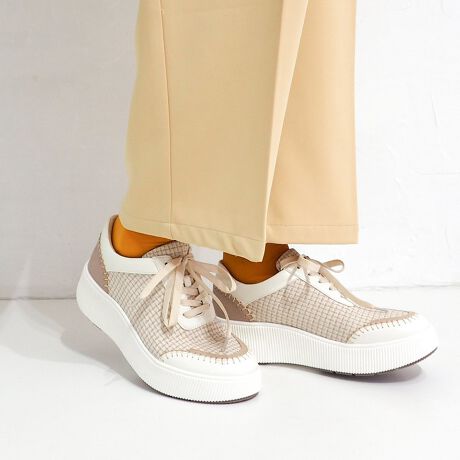 人気の厚底スニーカーは、あしながおじさんらしい素材やカラー選び、さらにはブランドオリジナルソールでカジュアル感たっぷりに。コの字かがりのステッチなど、手仕事感あるアクセントをプラスし、他とは違う個性あふれる一足に。