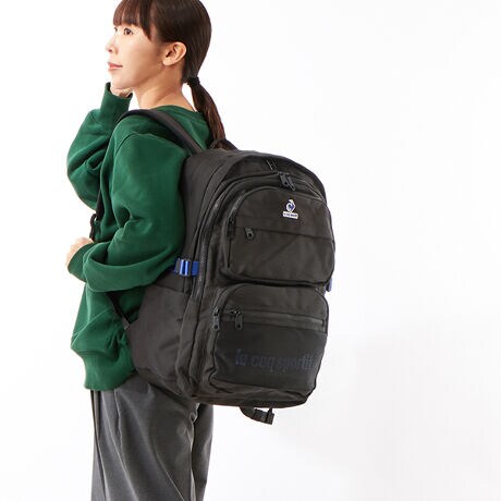 スポーツブランド<ルコックスポルティフ>の2層リュックです。29Lの大容量でA4サイズやノートパソコン、2Lのペットボトルもしっかり収納。はっ水加工が施された生地を使用しているので突然の雨も安心です。