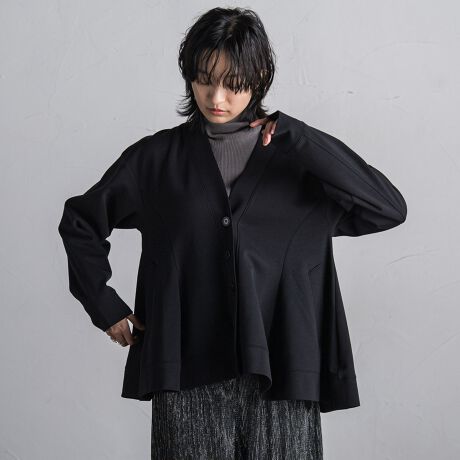 カジュアルさと品の良さをあわせもつ、ペプラムデザインのカットカーディガン。