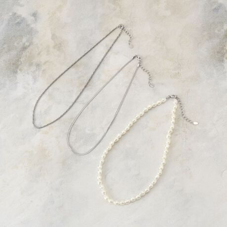 パール調、チェーン2連が1個に収まったショートネックレス。