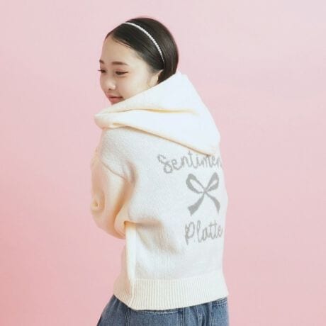 前身頃の刺繍と後ろのリボンモチーフが可愛らしさを引き立て、バックスタイルにもこだわりが見られます。