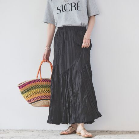 ・ワッシャーのしわ感がゆるいプリーツのような雰囲気に