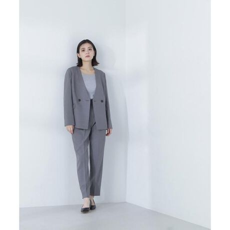 シルエットが美しいテーパードパンツは、ワンタックから続くセンタープレスが、腰まわりをカバーしながらキレイな脚のラインを演出。ウエストベルトには切り替えラインを入れ、ワンテク効いたデザインに。同素材のジャケットとのSETUPはもちろん単品でも着回せます。<素材>マシンウォッシャブル対応。ドライタッチの梳毛調でシワになりづらい素材。ドライタッチで初夏まで着られる素材です。<詳細>仕様・前ファスナー裏地・なし透け感・なし / 光沢・なし / 伸縮性・なし 生地の厚さ・普通<シリーズ>■ストレートパンツ[品番:0175130113] ■ノーカラー[品番:0175150112] ■ダブルブレスト[品番:0175150113]※モデルの着用画像の場合、光の当たり具合により、実際の色味と異なって見えることがございます。色味は、商品単体の画像をご参照ください。