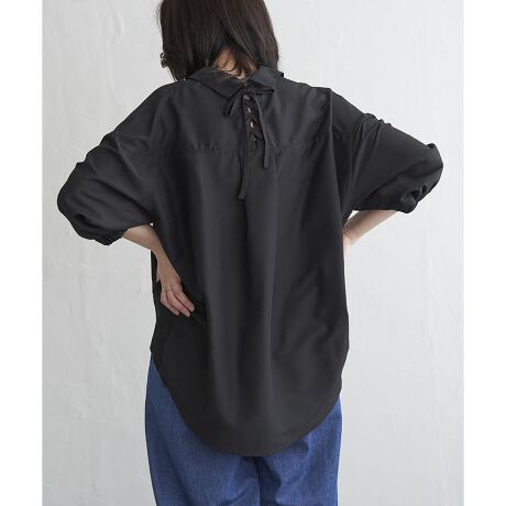 裾にタックを施し、まるでトップスインしているようなこなれたシルエットを演出する5分袖シャツ。