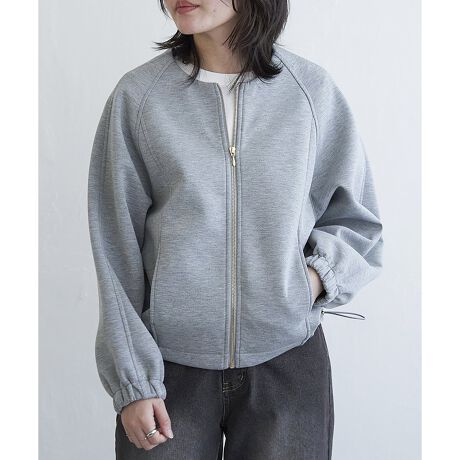 フロントはジップ仕様でブルゾン風デザインに仕上げ、気軽に羽織れるのが魅力。