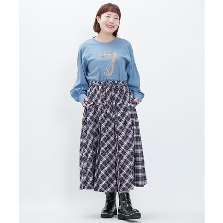 ◆ 表情の違うチェック柄を組み合わせたこなれスカート(大きいサイズ) ◆