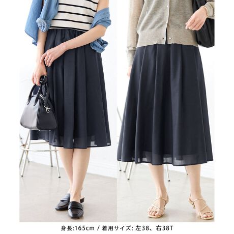 ・軽やかな素材感で季節を先取りできるキャザースカート。