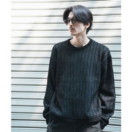*WEB限定 ランダムストライプ ルーズフィット モールニットセーター