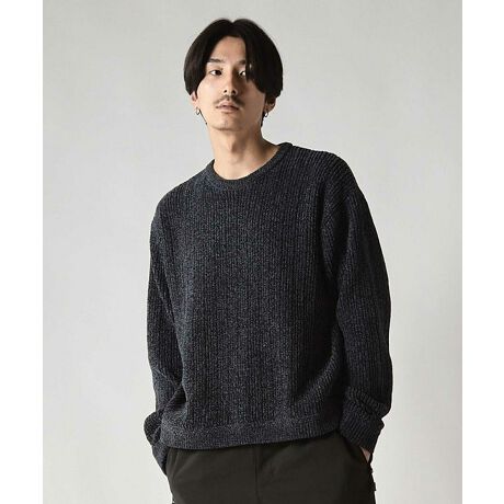 立体感のある暖かなモール糸を使用したクルーネックニット。