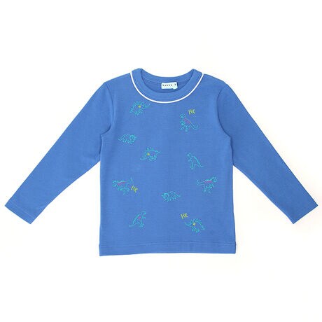 あたたかいウォームフライス素材を使用した恐竜プリントTシャツ。
