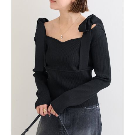 肩のリボンデザインが可愛いニットトップス。