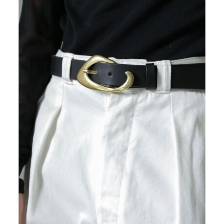 存在感のあるバッグルが洗練されたアクセントになるベルト。キレイ目なスタイリングはもちろんの事、デニムやチノパンなどカジュアルな装いにもハマる汎用性の高いアイテムです。