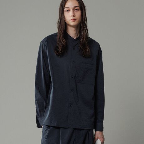 ストレッチナイロン バンドカラーシャツ / 接触冷感 / ロングシーズン着用可能