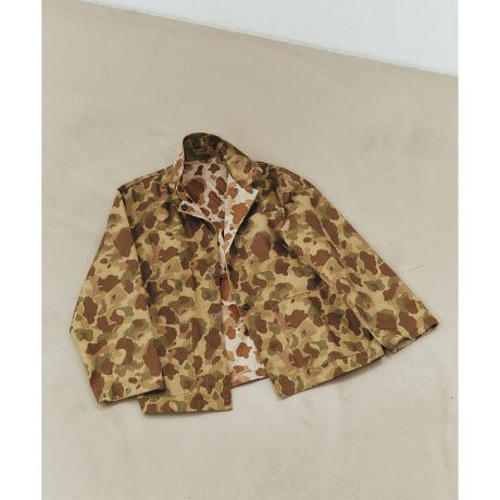 通称1stタイプと呼ばれる、40年代初期モデルのフロッグスキンカモフラージュ柄を最新技術を駆使した両面同時プリントでヘリンボンツイルの織り組織まで再現したテクニカルな素材。