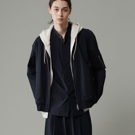 一重仕立ての軽い着用感とソリッドでモードな印象のボンバージャケット。