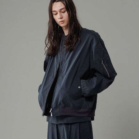 一重仕立ての軽い着用感とソリッドでモードな印象のボンバージャケット。