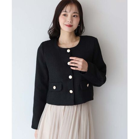 金ボタンノーカラーツイードジャケット