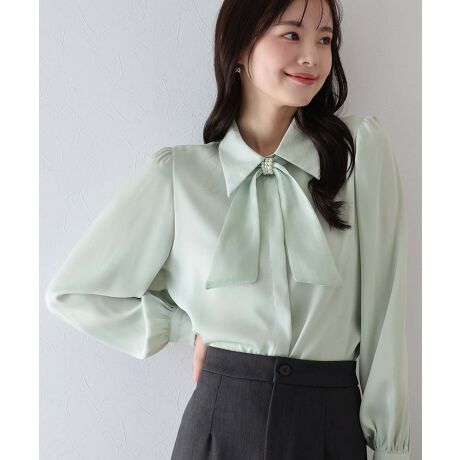 パールのリボンループと光沢感のあるリボンタイで女性らしさを演出し、