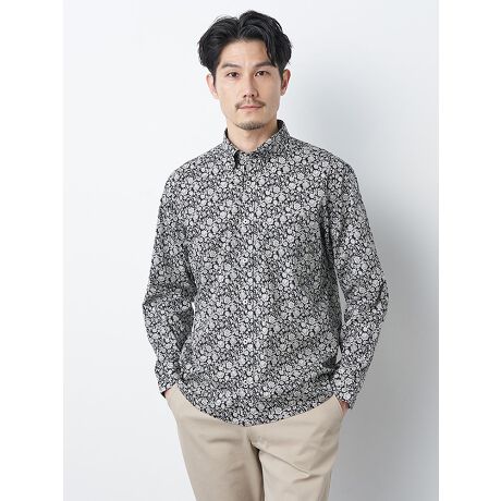 色の濃淡で描かれたフラワープリントのボタンダウン長袖シャツ。80/2コットンローンがベースで、しなやかなハリ感と上品な質感が特徴。落ち着いた花柄で、ジャケットのインナーからデニム合わせまで幅広いコーディネートに取り入れやすい1着。